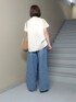 カジュアルなデニムスタイルにぴったりのブラウスのご紹介です。 フレンチスリーブで二の腕スッキリ!! 着丈は長めなのでウエストにインしたり、そのままふわっと出して着てもよし!!いろいろアレンジできます。 コットンで薄手なのでとても涼しく、さりげないフリルがコーディネートのポイントになります。