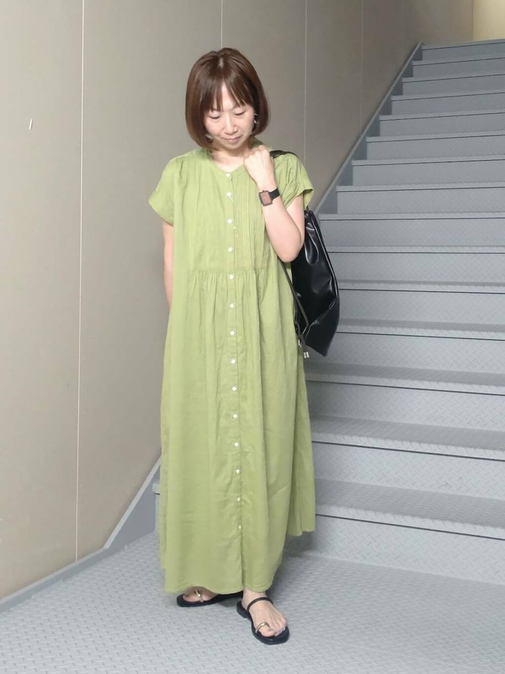 全体的にフワッとしたシルエットで、一枚でコーディネートが完成!! 休日のお出かけや、旅行に大活躍しそうなワンピースです。 裏地も綿100%なので、汗をかいてもさらっと涼しく着ていただけます。 サンダルやスニーカーと合わせてみてくださいね!!