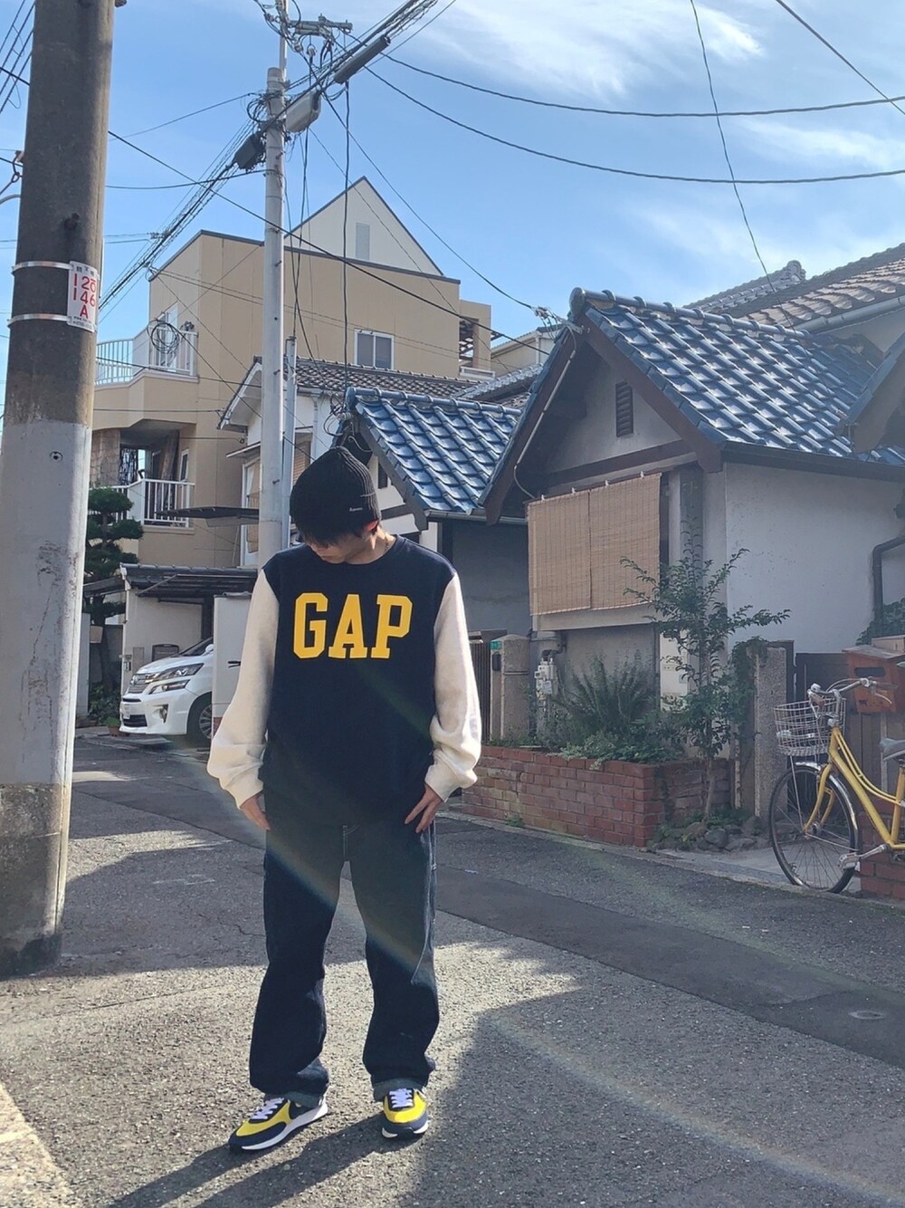 GAPのスウェットにlevi's のカーペンターパンツ、スニーカーはテイルウインド79 このコーデをスニーカー買った時からしたかったけど中々できずやっと、、 カラーリングとかすごい好み。