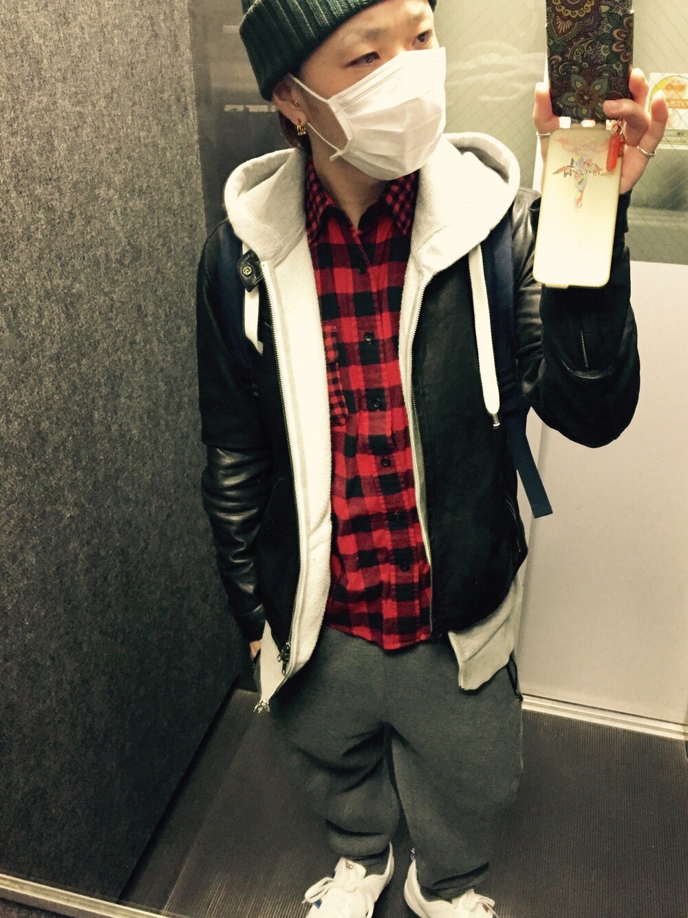 ネルシャツ:UNIQLO パーカー:H&M ライダース:URBAN RESEARCHオーダーメイド スウェットに慣れるとダメねー。