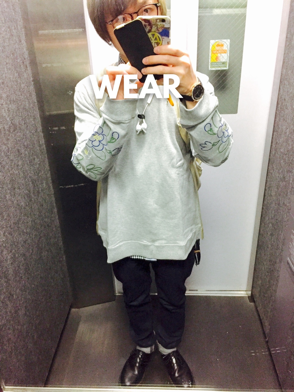 試練その40。 今日はアウター要らず。 袖の刺繍が可愛いのう。