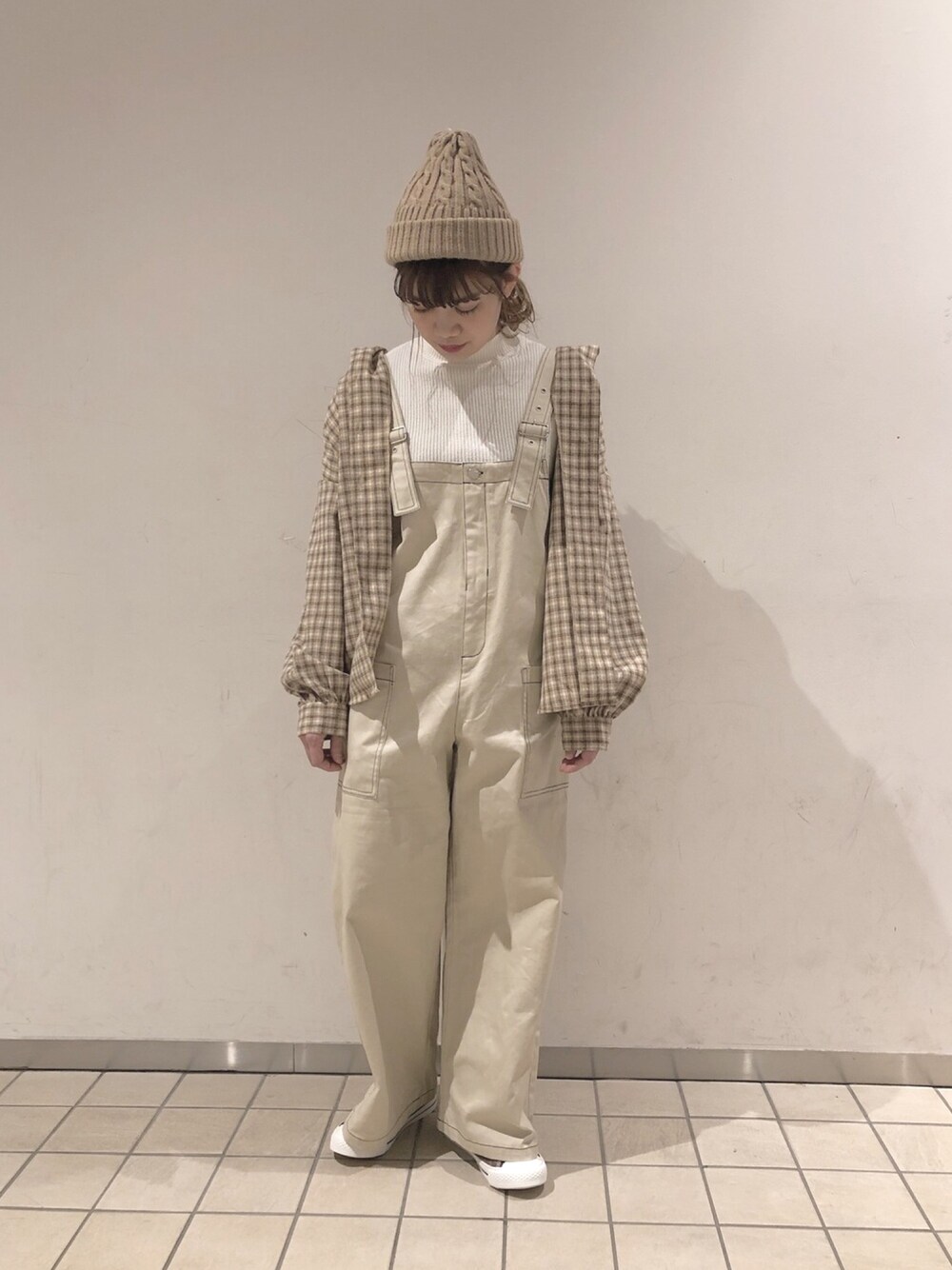. 初投稿です☺︎♡ どんちゃんって言います! よろしくお願いします! . 全身をベージュ系の色で 合わせたワントーンコーデ♡ .