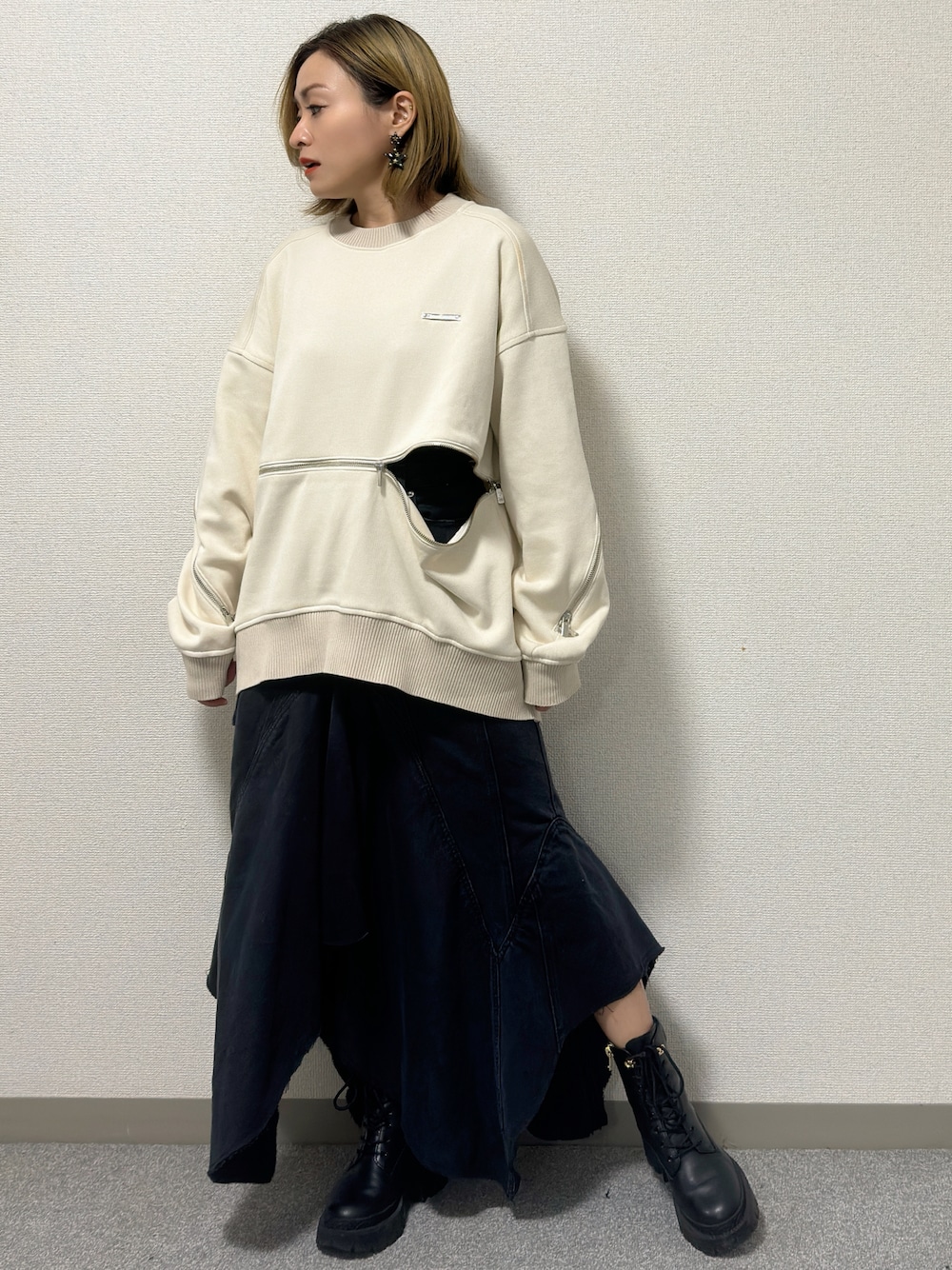 __loveyui__のニット/セーター「ファスナースリットリブダンボールニットトップ / Zipper Slit Ribbed Cardboard Knit Top」を使ったコーディネート