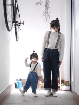 mioです。 2歳です。 リンクコーデしたがりの母ちゃんに 付き合わされてます。