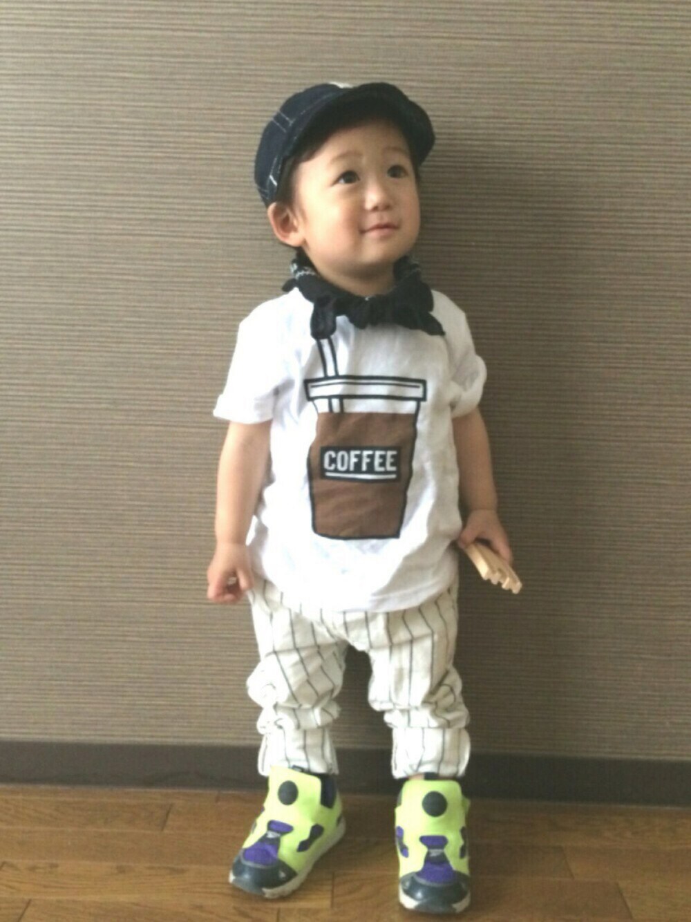 ストライプパンツ、去年はぶかぶかだったのが今年はぴったりに♡ 気に入った物は長く使いたいので、基本大きめサイズを買ってます。 バンダナ巻き巻きはかわいいからまたやろっと。 今日はトミカプラレールフェスティバルに行ってきまーす!