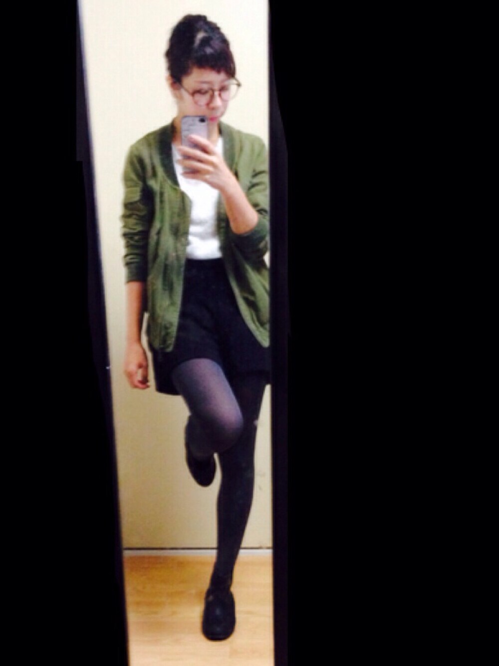 こんにちは☺︎ 今日は今からスーパーに買い物へ♩ GUのショートパンツ楽チン過ぎ!笑 白ニットとMa-1でシンプルに★☆