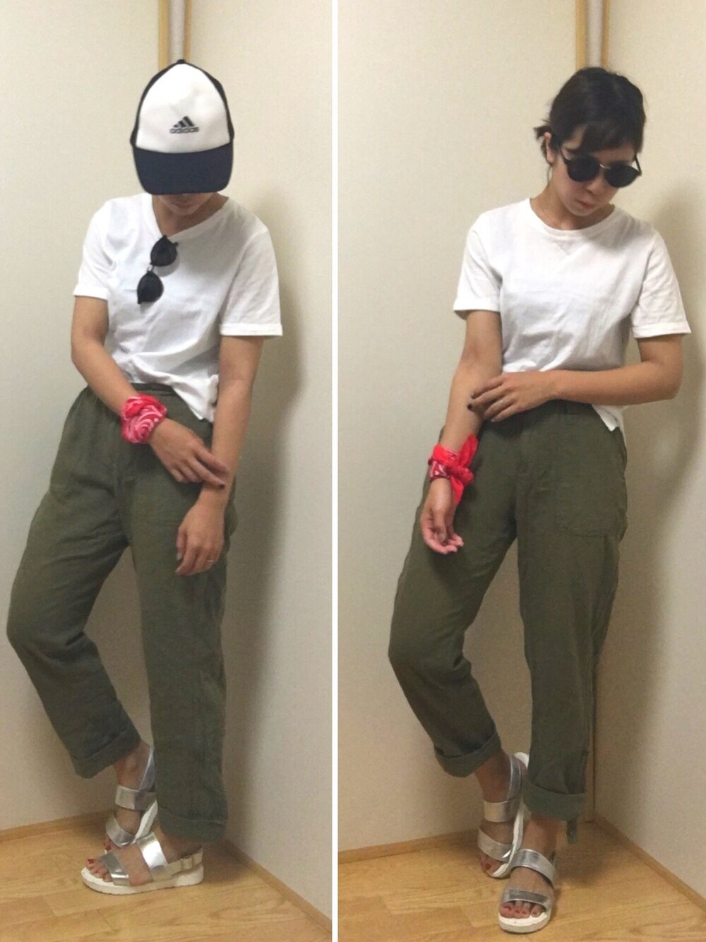 こんばんは! 息子2人と久々の風邪でダウン中m(_ _)m なので載せ忘れコーデです! 白Tにカーキのリネンパンツ♪♪ このパンツは2年前に購入したもの(^O^)