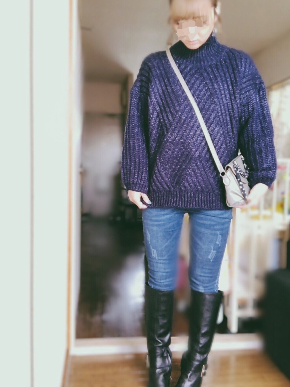 kakihana のニット/セーター「変形編みハイネックニットトップス」を使ったコーディネート