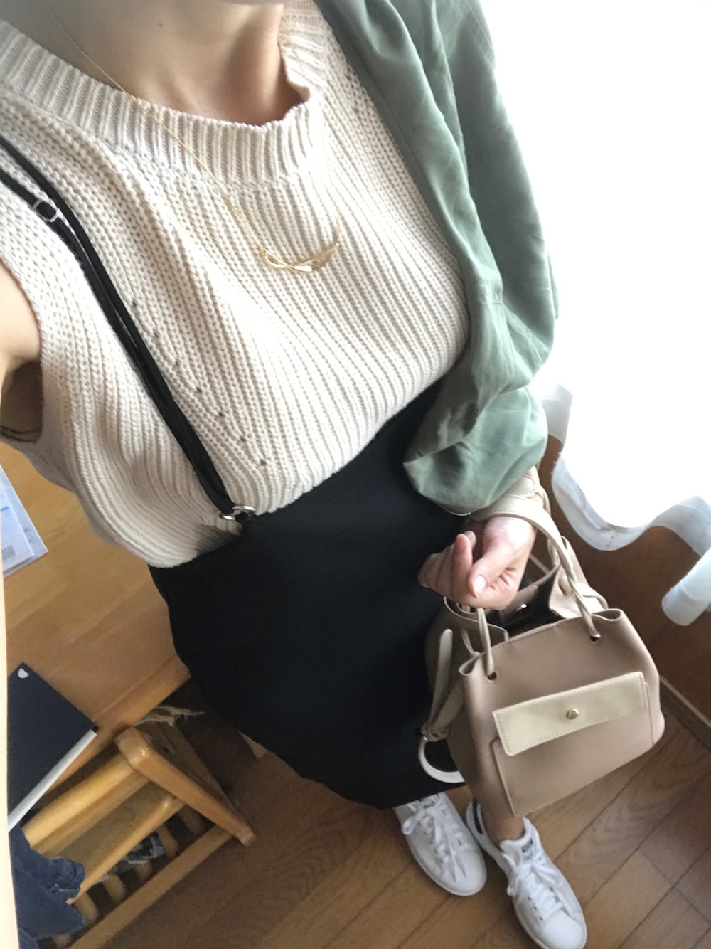 やっぱスニーカーて楽💓 そしてかわいい(◡̈) 夏も後半!カーキのブルゾン 肩がけしたけどまだやっぱ暑い!!