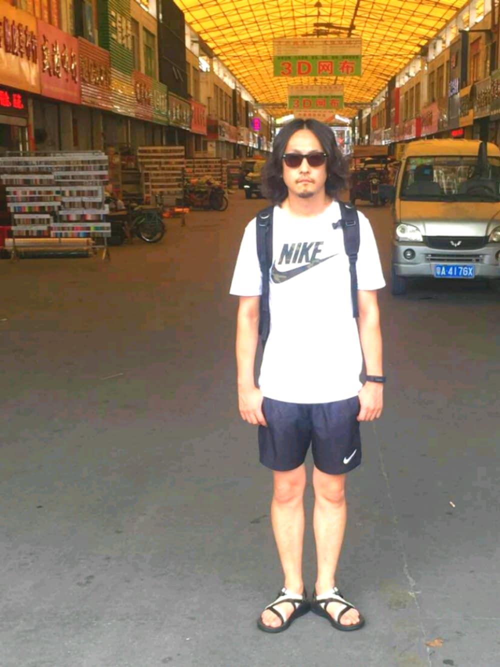 中年アシベ またまた FROM CHINA~! 秋を意識したコーデがふえてきているなか、真夏のかっこうで失礼します。 今日は35℃超えのなか1日中、外の市場を歩き回ったので、シューズ以外は普段ジョギングをする時のスタイルです。 暑さ対策と動きやすさ重視です! しかしチャコは1日歩いても足が痛くてならないので、やっぱり優れものです。