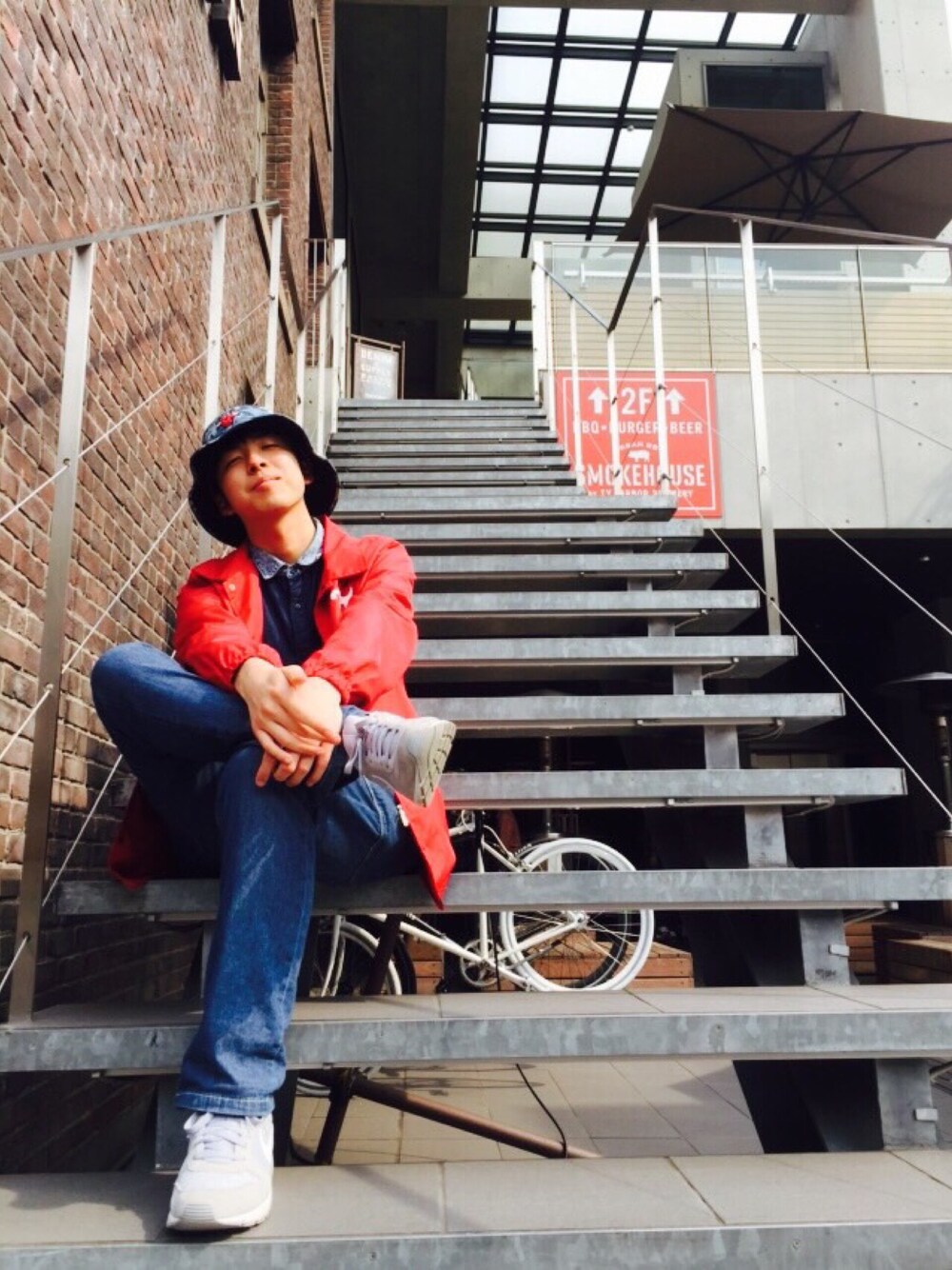 デニムonデニムで今年の流行を取り入れつつ赤のナイロンジャケットでインパクトを出しました! バケットハットはBULLSの物なので赤のロゴと統一性を出しました!