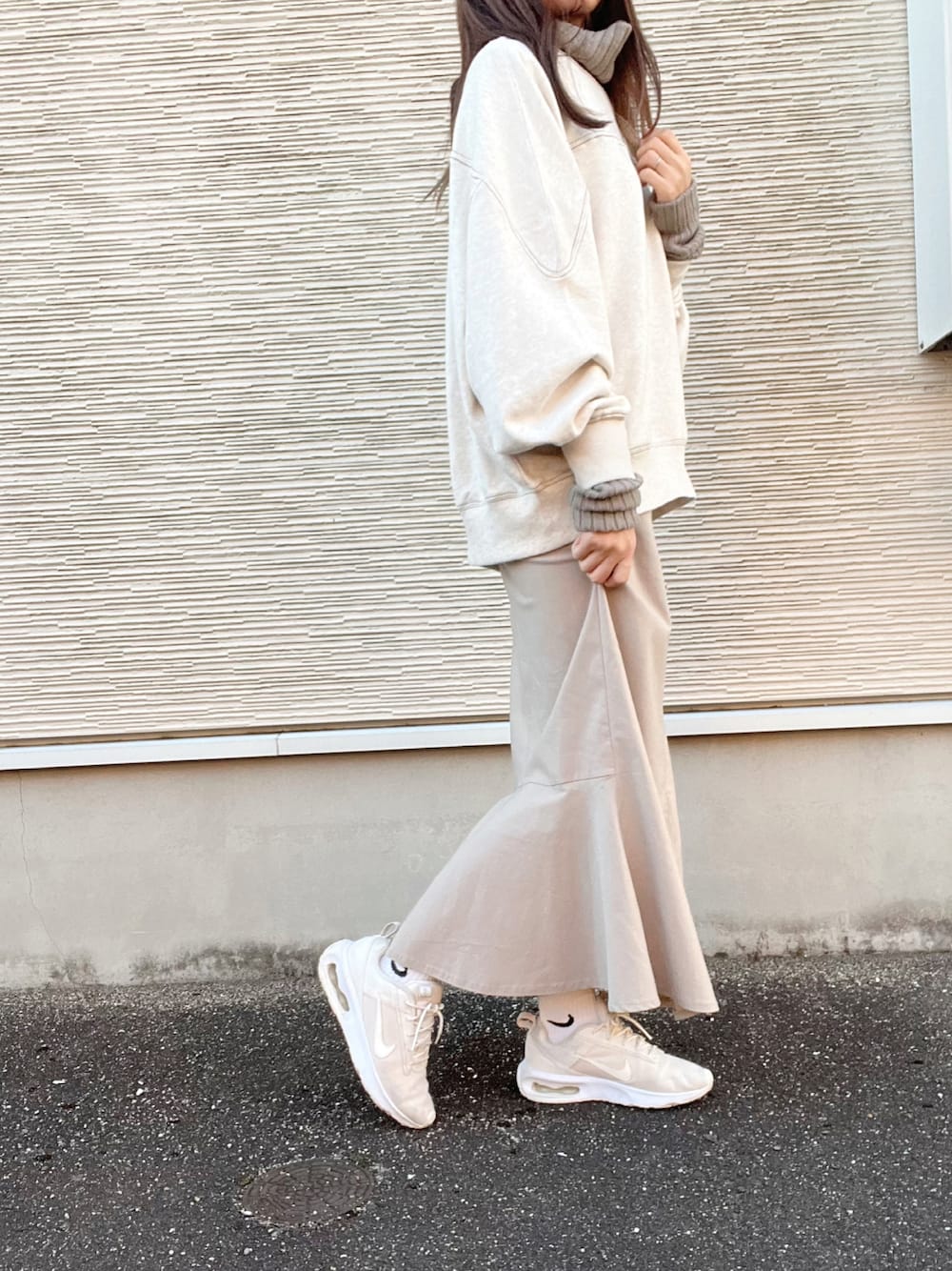 お久しぶりです ✿ ホワイト×グレージュのワントーン NIKEのソックス、ワンポイントのロゴが可愛くてお気に入り♡ˊ˗
