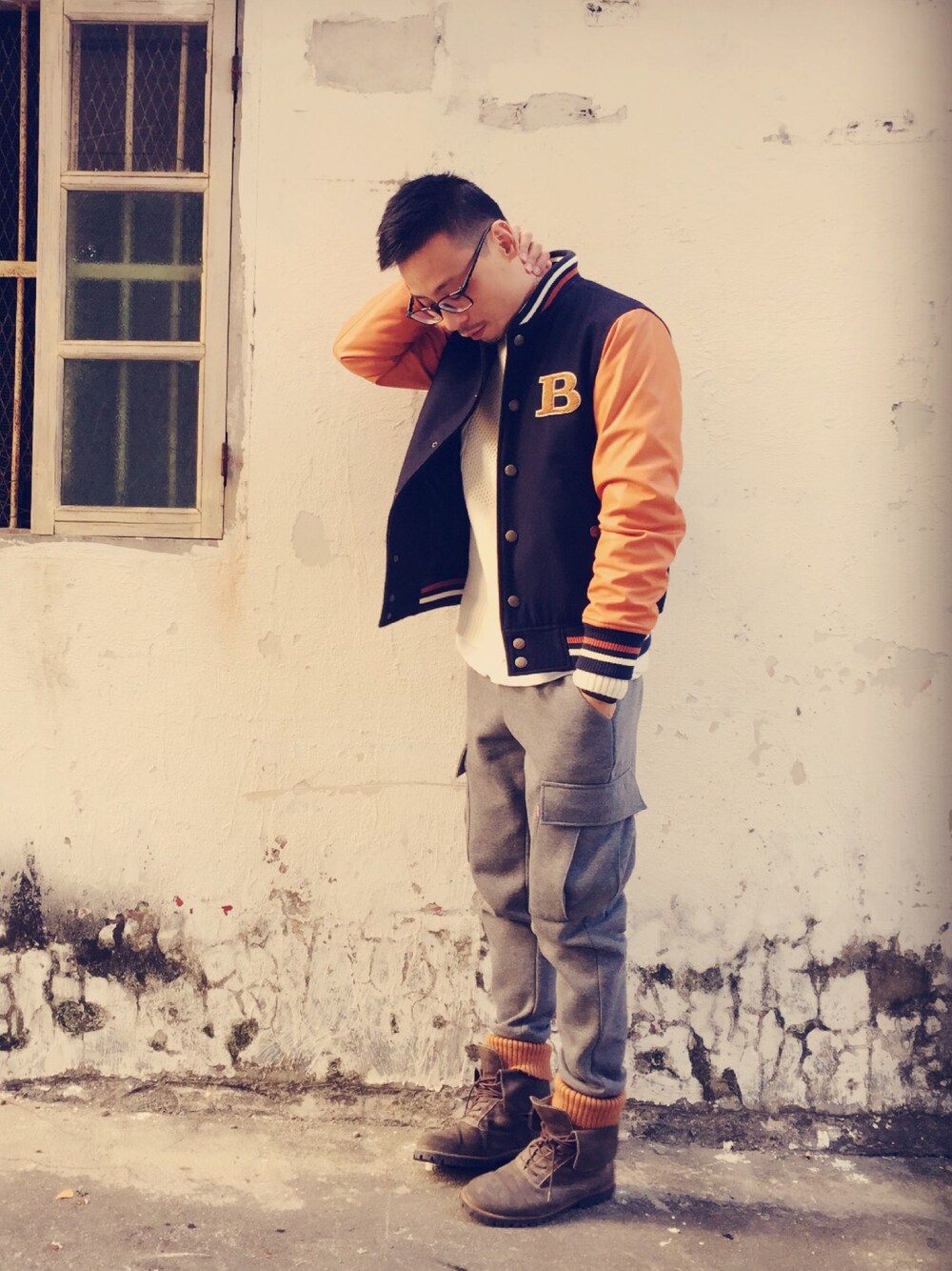 ブラック系のダウンジャケット/コートを着用したメンズの秋コーディネートの1枚目の写真