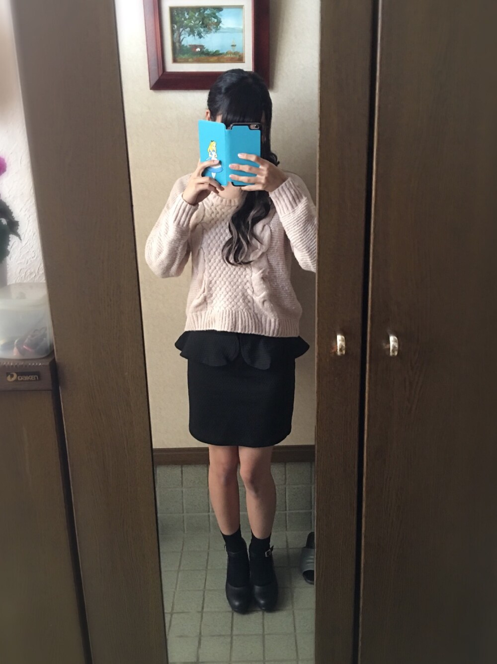 トップス:DIPDOROP スカート:GU ソックス:?? シューズ:WEGO お久しぶりです◡̈* ニットはバックのデザインがかわいくて一目惚れ♡