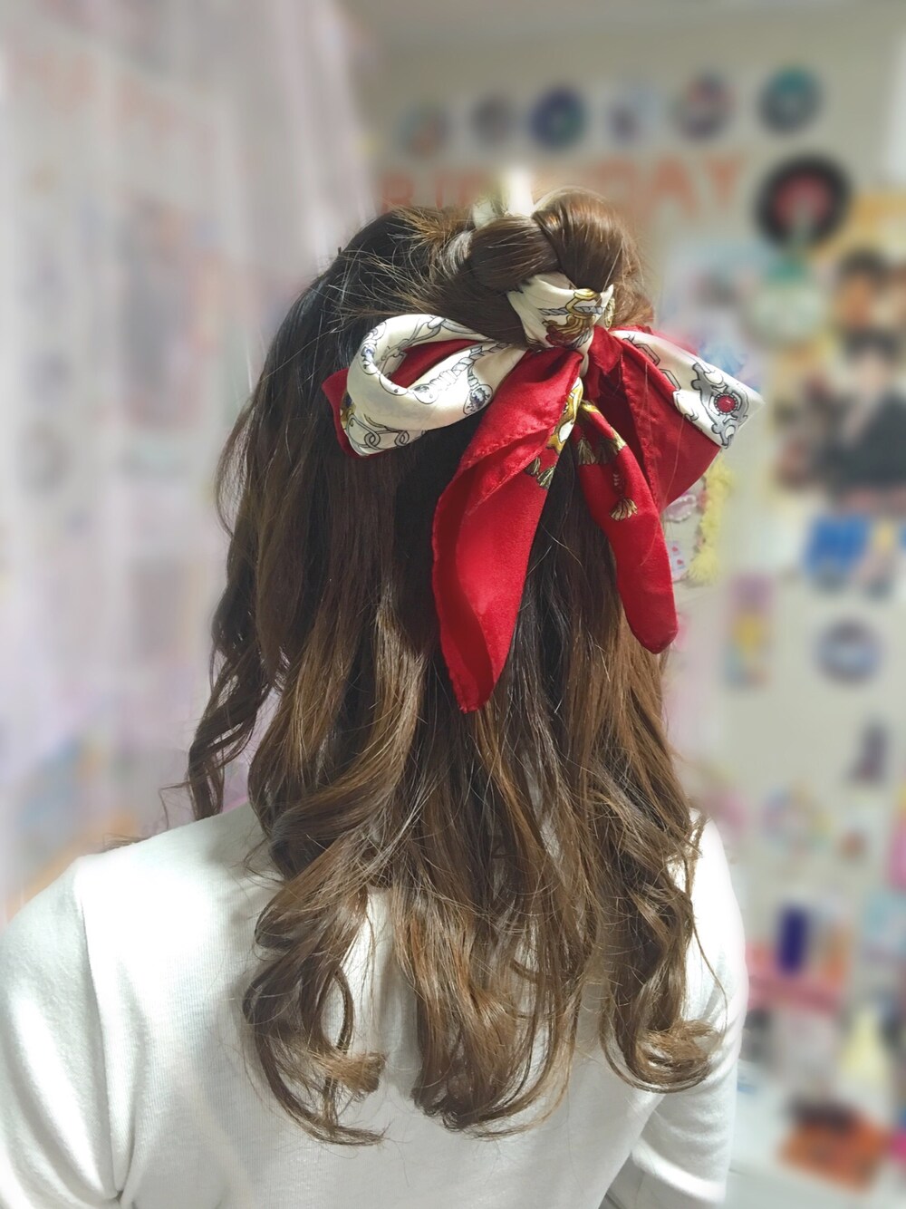 朝から校閲ガールを見て影響されました(笑) スカーフを使ったお団子ハーフアップのアレンジです(∩˃o˂∩)♡ はじめてスカーフアレンジをしてみましたがスゴく可愛くなります♡