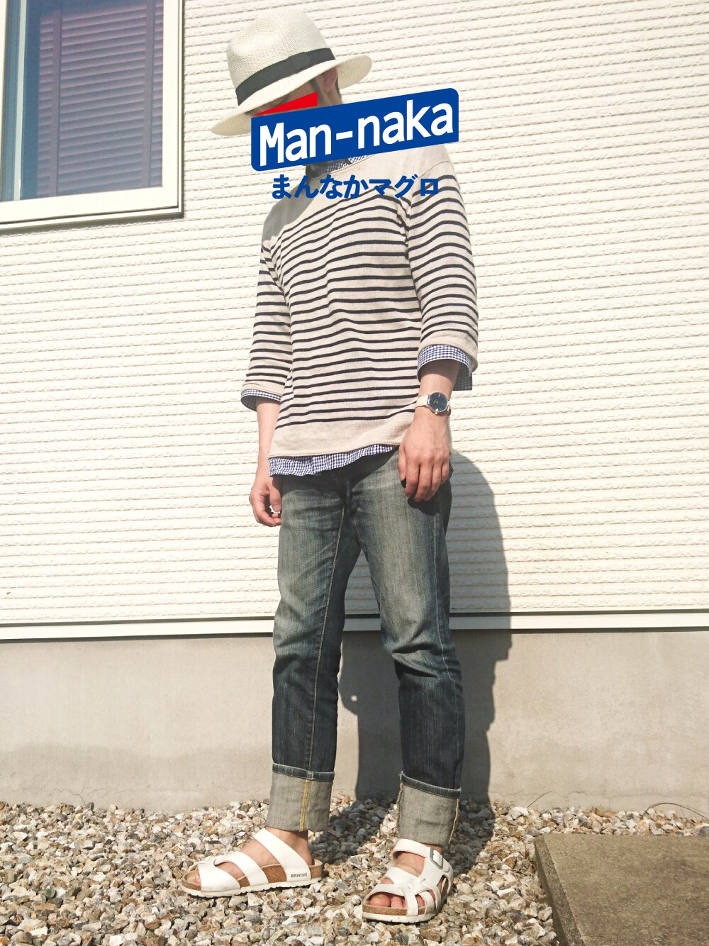 真ん中まぐろのニット/セーター「ボーダーサマーニット」を使ったコーディネート