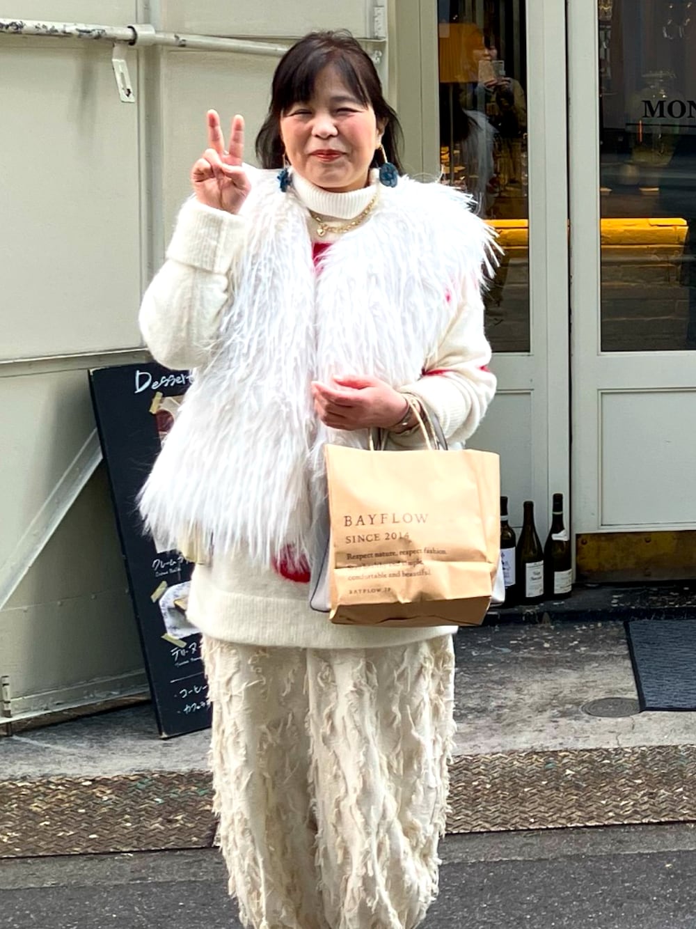 赤🟥白🤍ドッドのセーターに真っ白コーディネートで春☘️先コーデしました