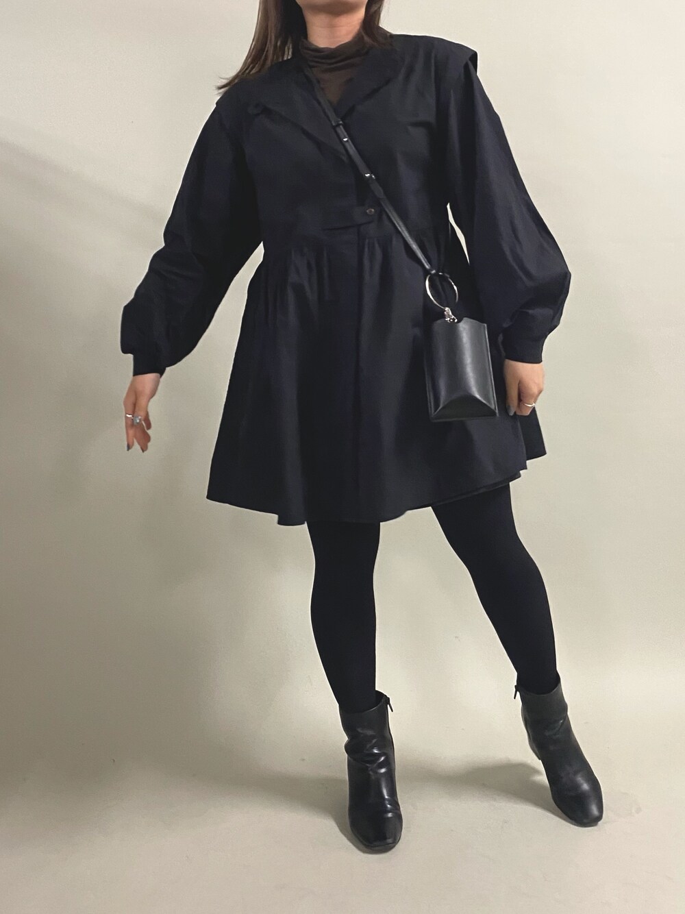 てちのシャツワンピース「バルーンスリーブフレアミニワンピース(バンドカラーシャツワンピース)」を使ったコーディネート
