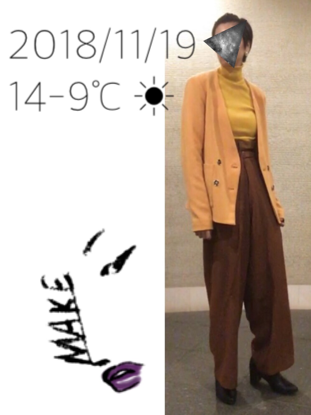 FOREVER 21fifth¥2,129HARE¥9,350enchanted¥15,180この画像から似たアイテムを検索できます18214お気に入り (2)140hingeさんへのコメントNO COMMENTコメントはスマートフォン用アプリからご利用できます着用アイテムFOREVER 21FOREVER 21テーラードジャケット (イエロー系)テーラードジャケット探すZOZOTOWNで探す¥2,129fifthfifthニット/セーター (イエロー系)ニット/セーターサイズ:MEDIUM着用コーデ:5件探すZOZOTOWNで探す¥9,350HAREHAREその他パンツ (ブラウン系)その他パンツサイズ:SMALL着用コーデ:35件探すZOZOTOWNで探す¥15,180enchantedenchantedブーツ (ブラック系)ブーツサイズ:40着用コーデ:18件探すZOZOTOWNで探すhingeのテーラードジャケットを使ったコーディネート#イエローマン #5年に一度着るジャケットコメントを表示2018.11.20着用ブランドFOREVER 21fifthHAREenchantedタグ#ブーティ#ワイドパンツ#ハイウエスト#ジャケット#ダブル#イエロー#ワントーンコーデモデル情報女性・161cm似ているアイテムFOREVER 21 × テーラードジャケットfifth × ニット/セーターHARE × その他パンツenchanted × ブーツhinge@techite / 161cm / WOMEN0コーディネート0フォロワー注目のコーディネートアプリでもっと見るもっと見る