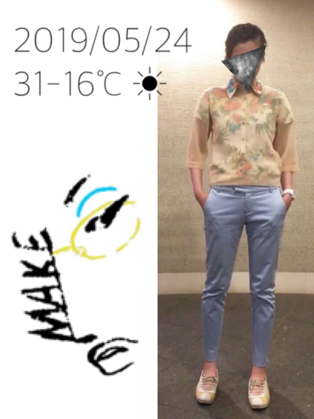ベージュ系のニット/セーター、ホワイト系のシャツ/ブラウス、イエロー系のスニーカーを着用したレディースの春コーディネートの1枚目の写真
