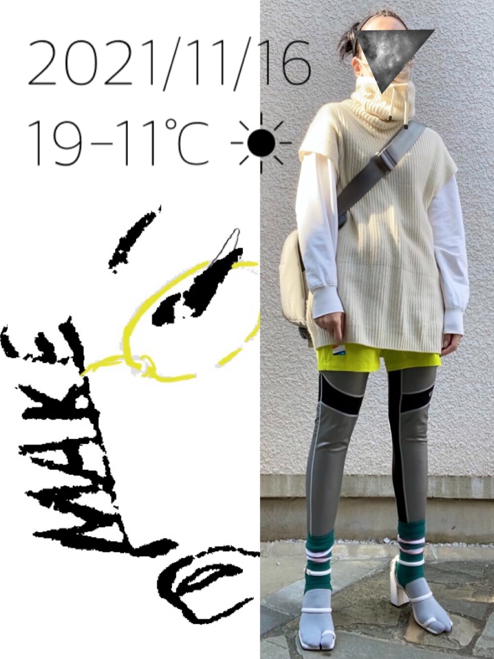 ホワイト系のサンダル、イエロー系のパンツ、ホワイト系のTシャツ/カットソーを着用したレディースの秋コーディネートの1枚目の写真