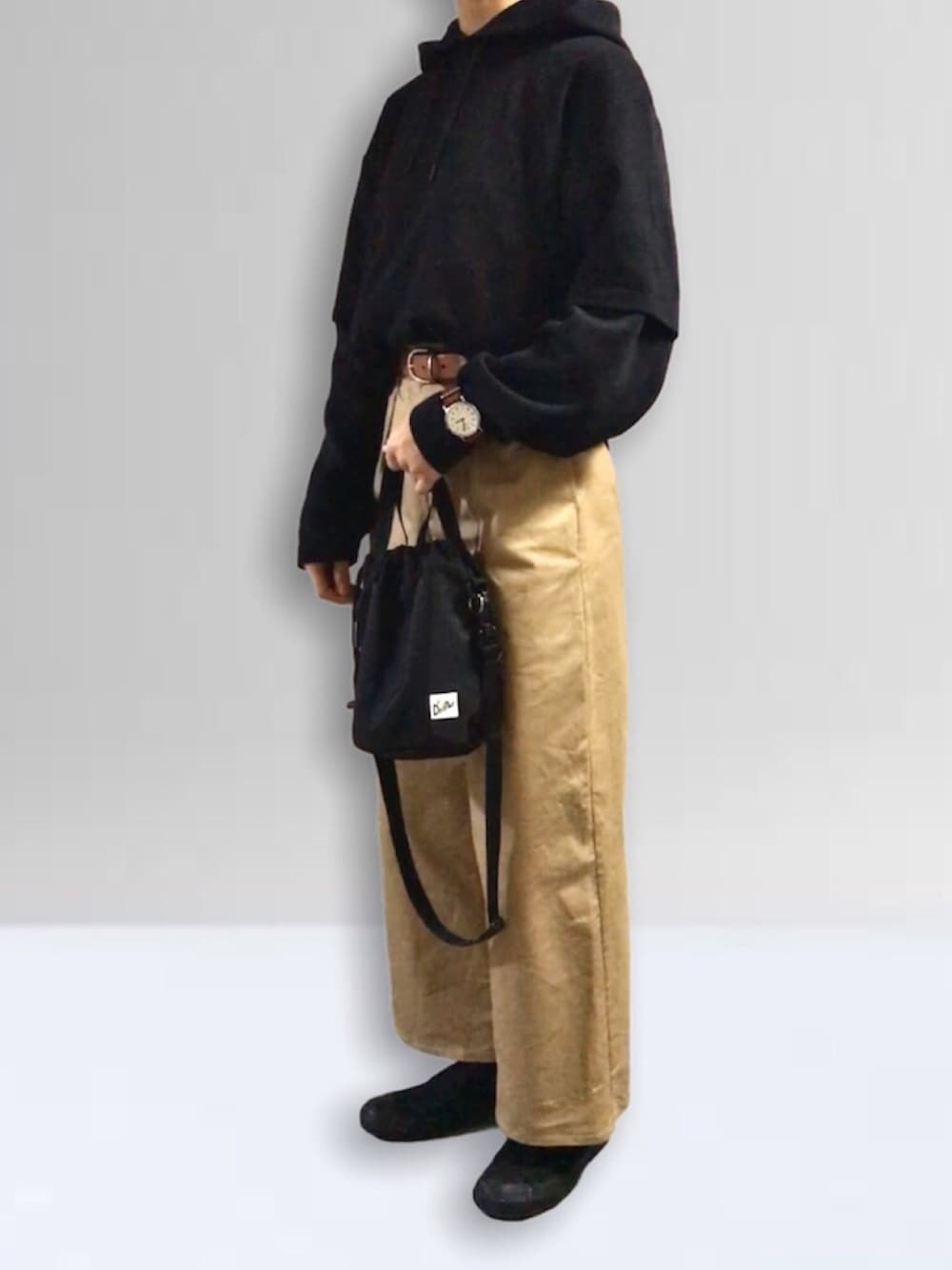 黒パーカーに黒半袖Tシャツ着てます バッグはあいかわらずのdrifterです ご覧いただきありがとうございます Instagramもやっています→tecmac_