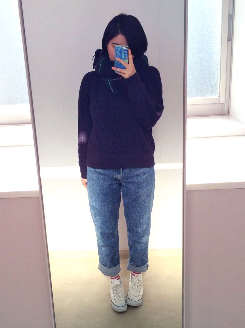 久しぶりの投稿(*^o^*)♪ ケミカルウォッシュ加工のデニムにコンバースを合わせて楽チンコーデ(o^^o)