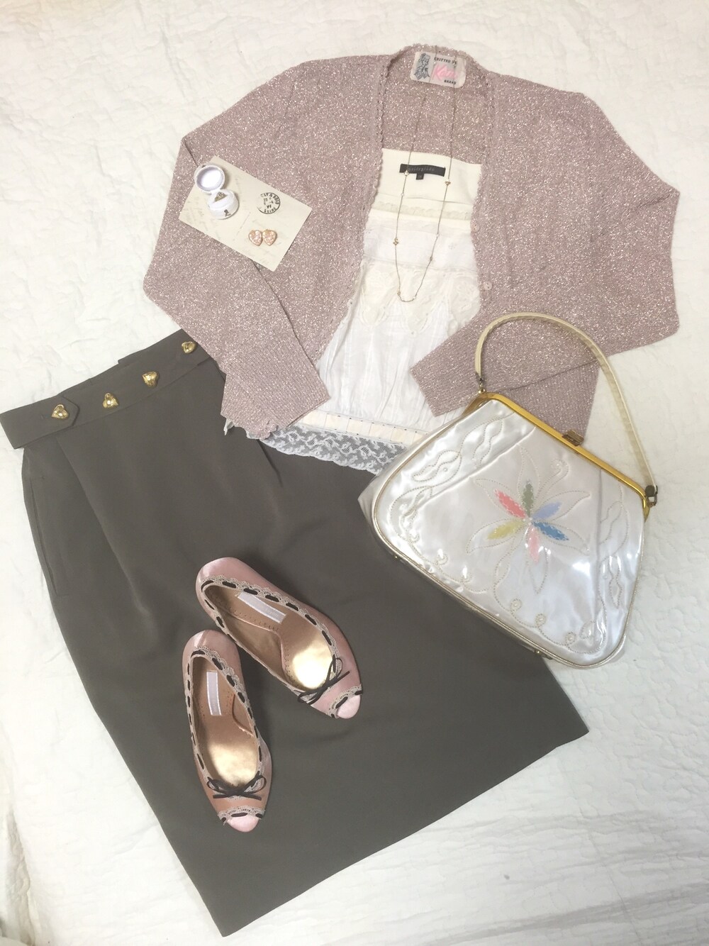 また放置しちゃった……ご無沙汰しております。 いつも写真撮影のタイミングを逃しちゃうのです😭なので物だけ撮ってみた! 1920年頃のアンティークのキャミソール。ケイティのラメニットが不思議と合います。 1950年代アメリカのバッグは地元の古着屋さんで購入。 レベッカテイラーのパンプス、新品のまましまい込んであったのを発掘しました(笑) ヴィンテージに合うので嬉しい。 レベッカテイラーの靴、可愛くて大好きだったのですが、もう作ってないんですよねー。復活希望❣️