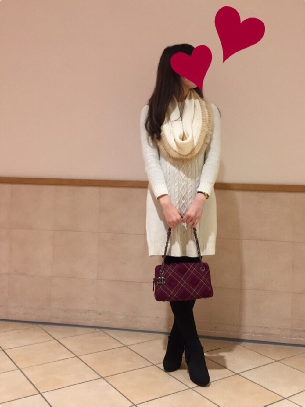 このワンピとスヌードのセット、 何年か前の物ですが、お気に入りで毎年着てます。 毛玉出来にくくてすごくいい。 スヌードは2通りの着方ができます。 婚活時代の勝負服ですw 旦那さんと初めて会ったときも着てましたw 私は白いニットワンピ最強説を推していますw ただし婚活のときにハイブランドのバックはあまり持たない方が良いです! 以上、突然の婚活講座でした。笑