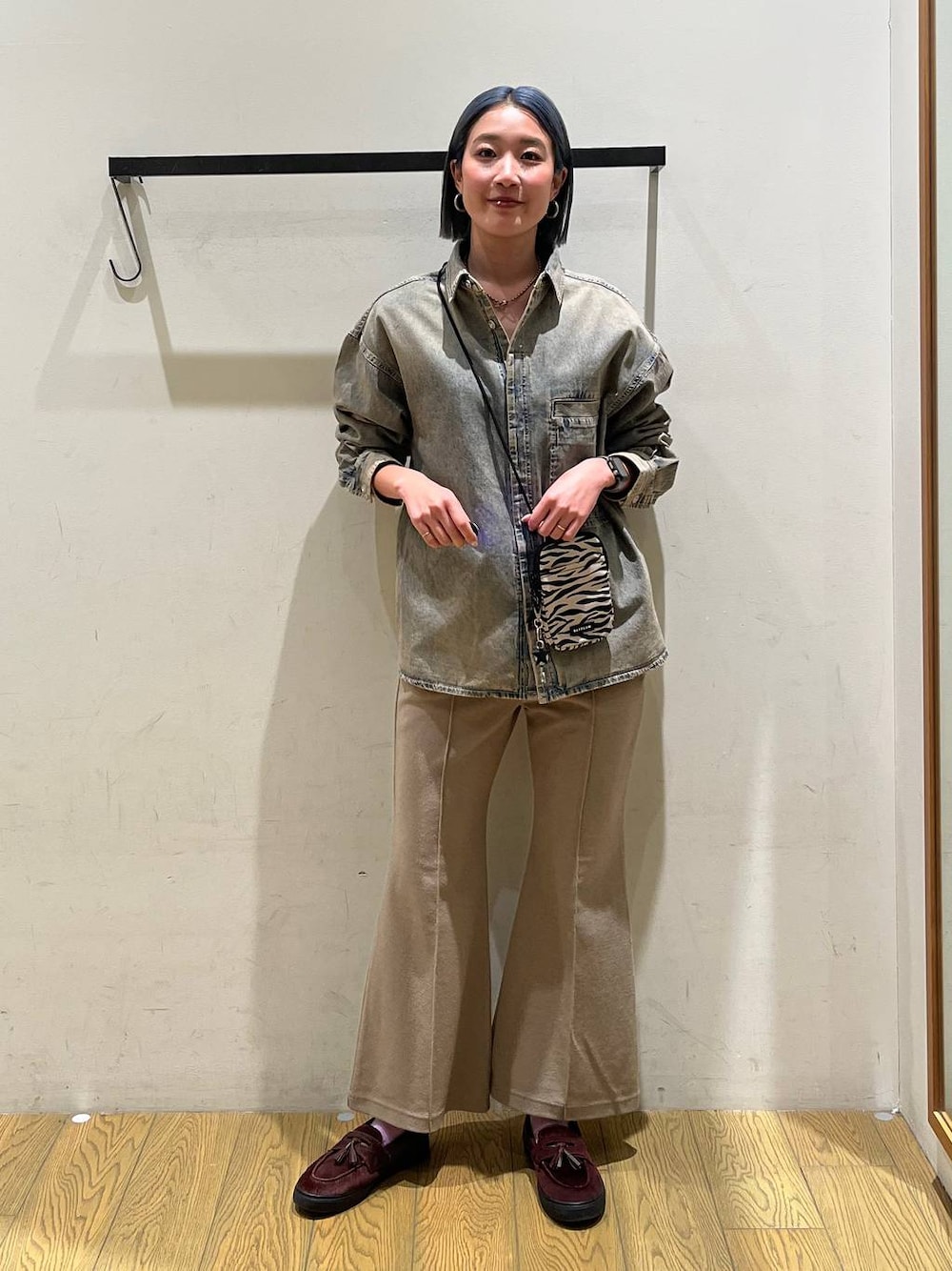 HEREIAMの新作デニムシャツ Mサイズ着用でゆとりあるサイズ感です! 中にTシャツを合わせても窮屈にならないサイズ感でした! ウォッシュ加工の色味がたまらなくかわいい、、 ユニセックスなので、どなたでも着ていただけます! Lサイズ着用の写真も別で載せてます!!