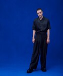 オールブラックのコーディネートでも立体感のあるパンツを使用する事でシンプルになりすぎません!3タックで超ワイドシルエットのパンツはいつものコーディネートを新鮮にしてくれます!