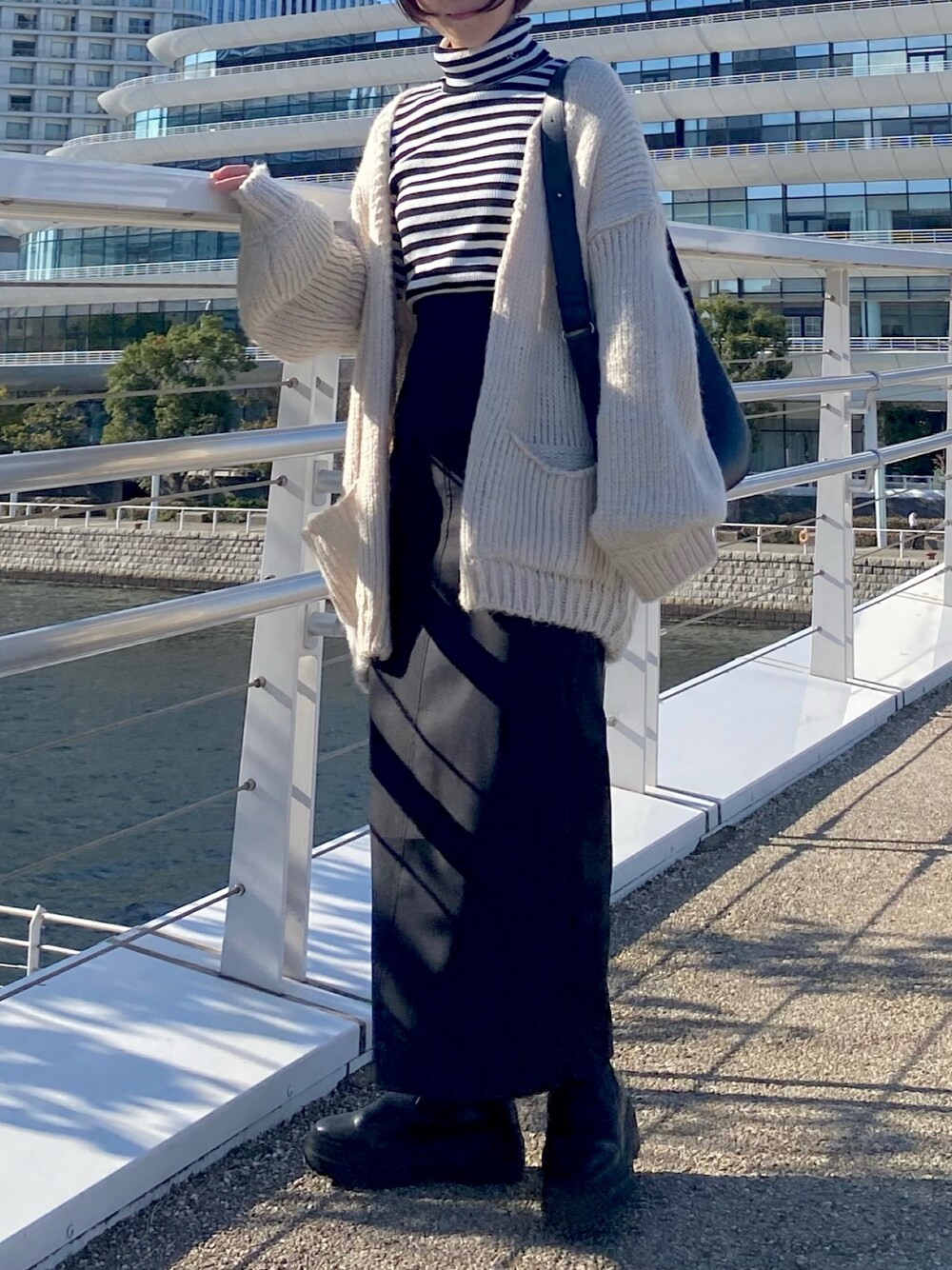 てつのカーディガン/ボレロ「【ANDJ MADE】ビッグシルエットボリュームスリーブニットカーディガン」を使ったコーディネート
