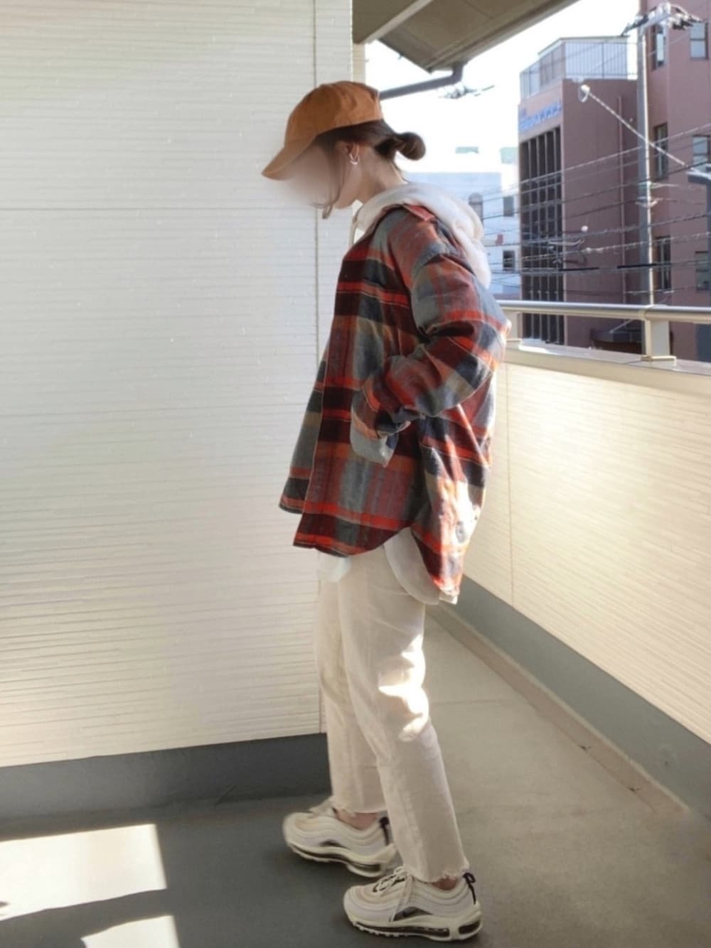メンズのチェックシャツで メンズライクコーデ☆ いいね、セーブ、フォロー、 ありがとうございます♡ rhさん、 izuさん、 前回コーデのフォルダイン📁 ありがとうございました😊