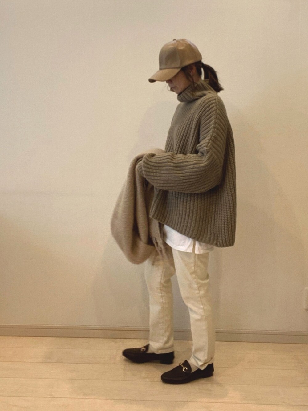teeemoeのニット/セーター「バルキーローゲージタートルネックニット」を使ったコーディネート