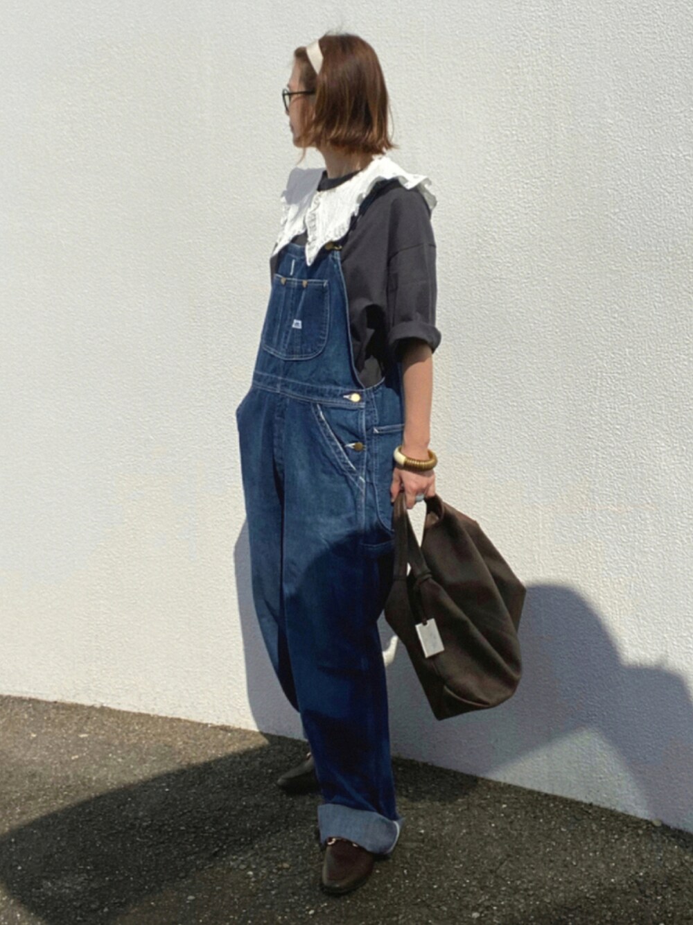 ゆるコーデ♡ ゆるっとしたオーバーオールは 安定のかわいいさ♡ ダークブラウンの ローファーとバッグで ちょっとオトナ感♪ いつもありがとうございます☺︎ #pr