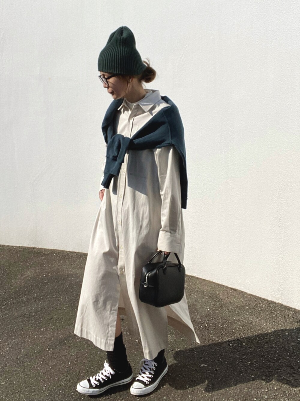 teeemoeのワンピース「FORK&SPOON コードレーンシャツワンピース」を使ったコーディネート