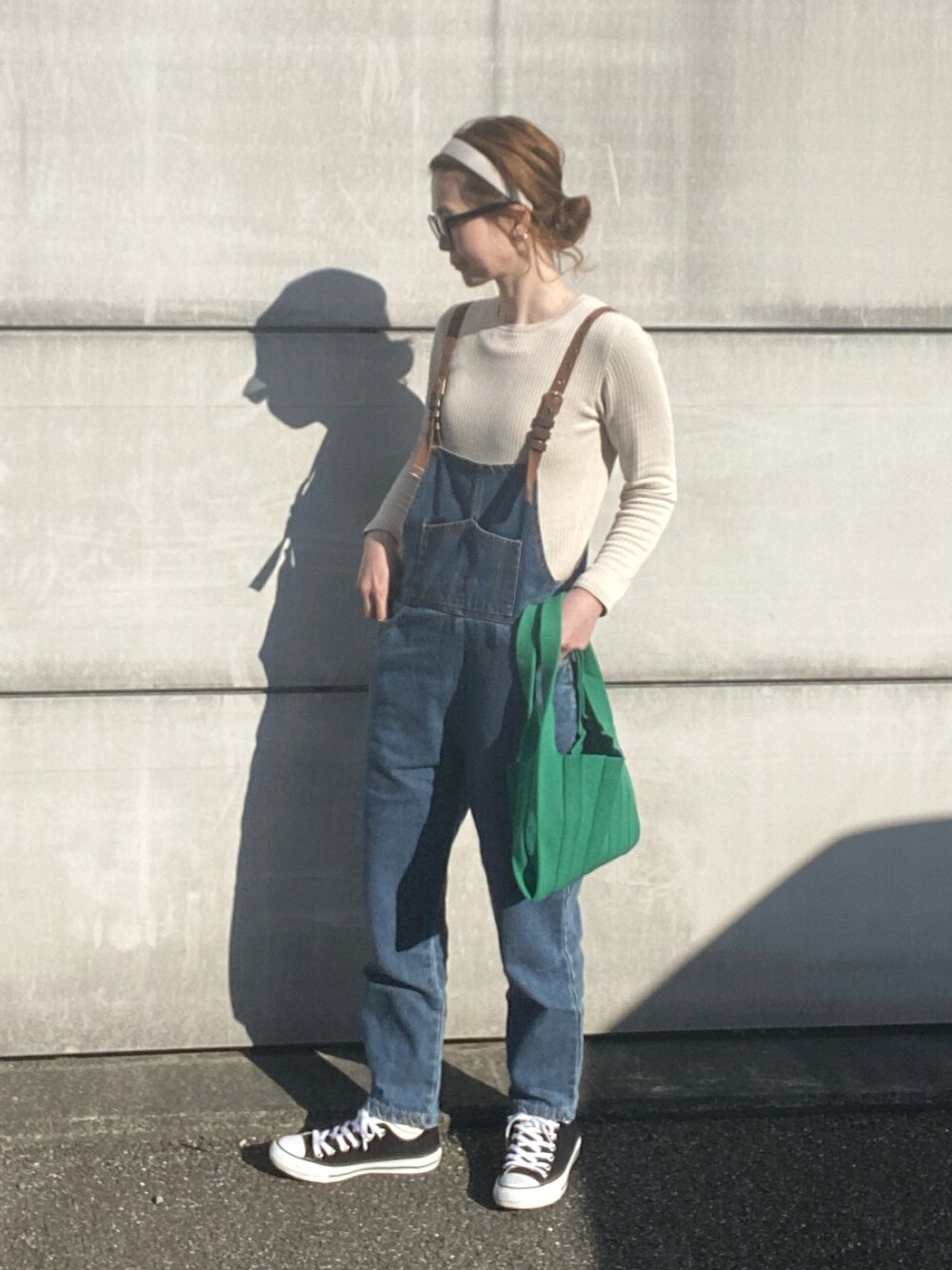 シンプルなリブニットと ベルトが異素材のサロペット♡ タイトめなニットは サロペットの合わせにも ピッタリ♩ 見ていただきありがとうございます☺︎ #pr