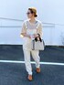 透かし編みニットに サロペットで ワントーンコーデ♡ 見ていただきありがとうございます☺︎