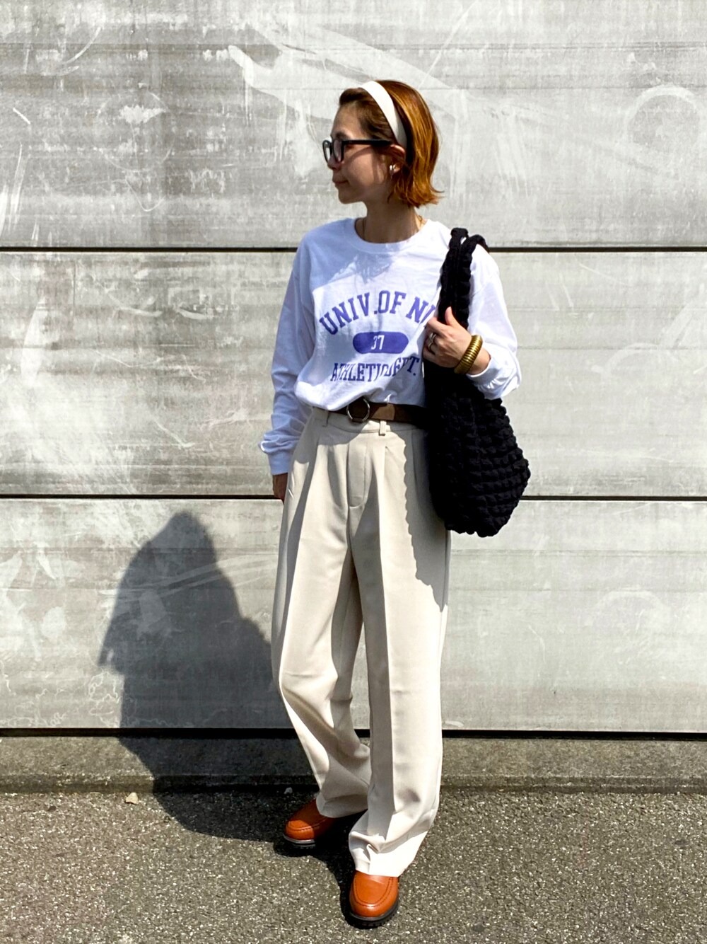 teeemoeのTシャツ/カットソー「GILDAN カレッジロゴ オーバーサイズ プリント ロンT」を使ったコーディネート