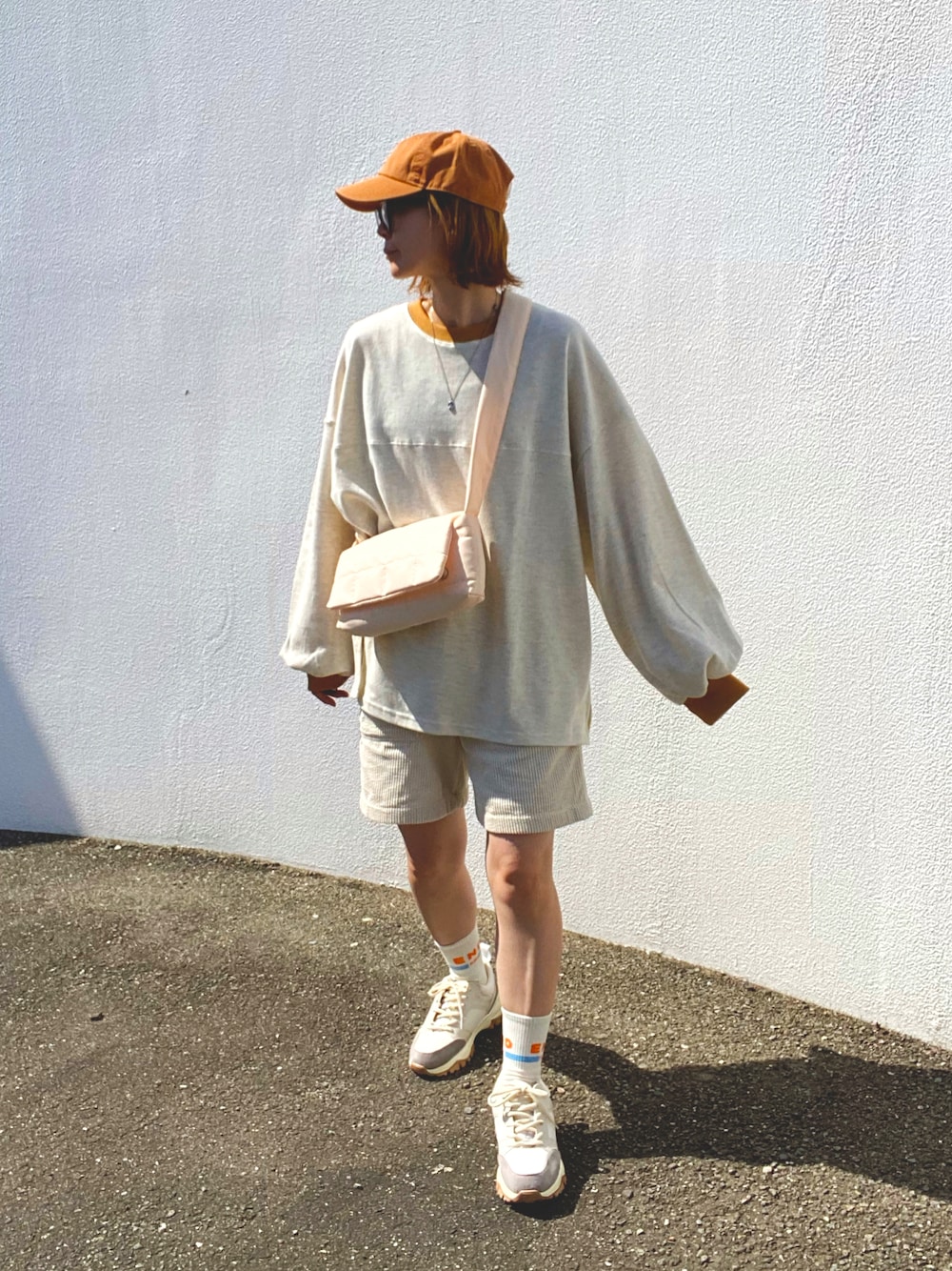 teeemoeのスウェット「ビッグシルエットバイカラーリブスウェット」を使ったコーディネート