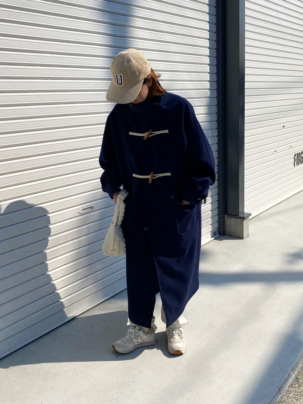 teeemoeのダッフルコート「【forksy.】メルトンチンストラップ付オーバーサイズダッフルコート」を使ったコーディネート
