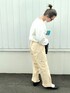 teeemoeのチノパンツ「Dickies/ディッキーズ ストレッチツイル/デニム ダブルニーイージーワークパンツ」を使ったコーディネート