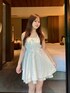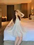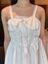 胸元のリボンやレースがポイントのワンピース🤍 ふんわり広がるシルエットと、コルセット風のデザインがフェミニンさを引き立ててくれます! ホテルステイや記念日デートなど、特別な日にぴったりな1枚♩