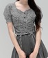 mejoul_staff(EC事業部)のシャツ/ブラウス「ギンガムチェック ドロスト リボン ギャザー スクエアネック パフスリーブ ブラウス トップス」を使ったコーディネート