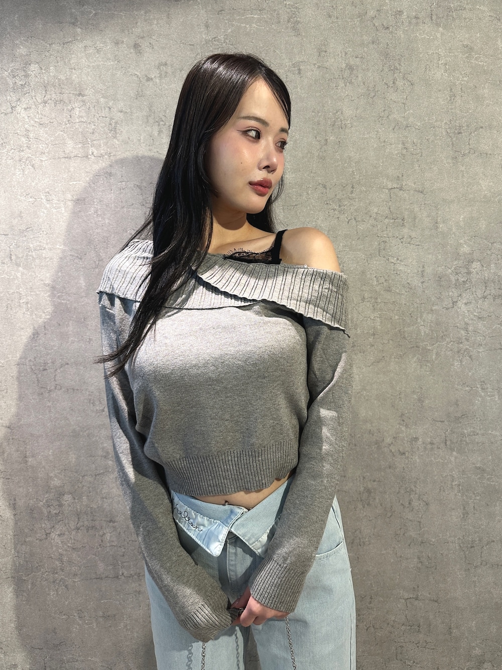 mejoul_staff(EC事業部)のニット/セーター「【2025秋冬新作】レースフェイクレイヤードオフショルニット」を使ったコーディネート
