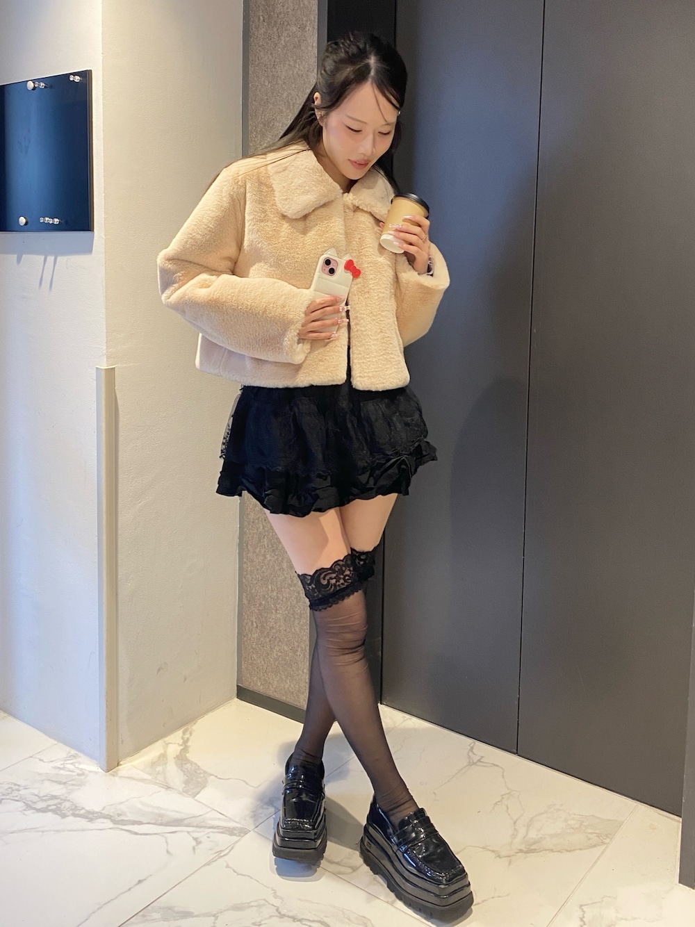 mejoul_staff(EC事業部)のブルゾン「襟付きフェイクファーショートブルゾン」を使ったコーディネート