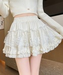 mejoul_staff(EC事業部)のスカート「【2026春夏新作】【インパン付き】ハイウエストフリルティアードレースミニスカート」を使ったコーディネート