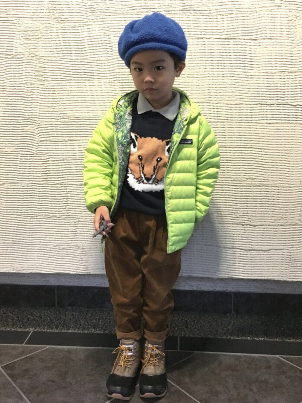 ててのダウンジャケット/コート「Patagonia / 15 Baby Reversible Down Sweater Hoody (6~5y)」を使ったコーディネート