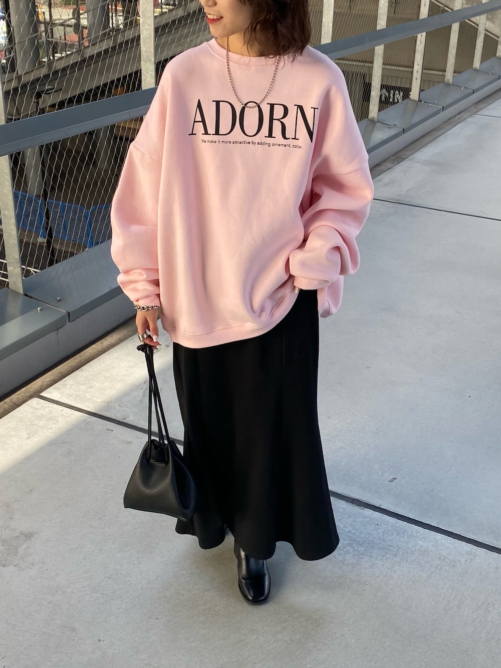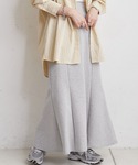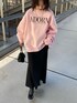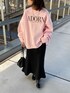 ゆったりとしたメンズスウェットにはマーメイドスカートを合わせて女性らしさをプラス! 薄いピンクカラーが冬にぴったりです!