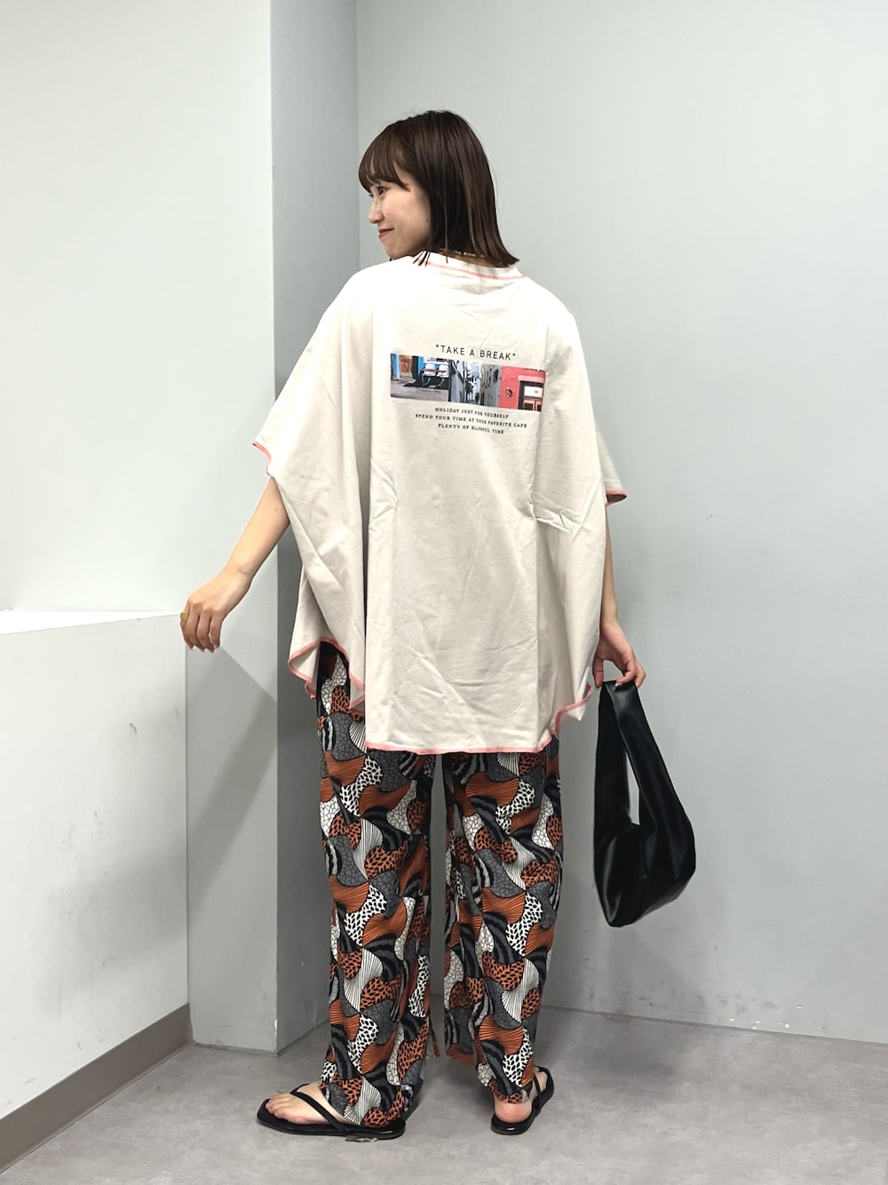 バックプリントデザインで、 フロントはシンプルなデザインなので 柄パンツとも合わせやすいポンチョTEE。 instagram ▶︎ @teri0_____